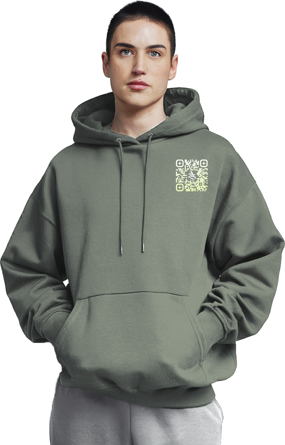 A premium unisex hoodie combining unique art with functionality. Featuring a striking butterfly graphic on the back and a trendy QR design on the front, this 345 GSM hoodie blends comfort and bold style effortlessly.